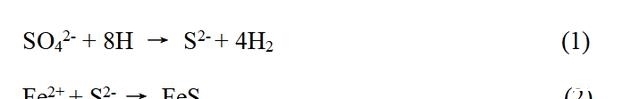 科学家研究表明微生物参与腐蚀过程,金属表面会附着一层具有腐蚀能力的生物膜,在微生物体内生物酶的作用下,细菌将硫酸盐还原成硫离子,硫离子与腐蚀产生的铁离子进一步反应生成铁硫化物(反应1和2),从而参与并加速腐蚀过程。